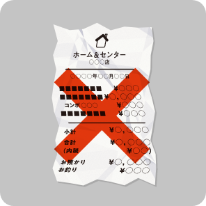 ●レシートが長い場合は、上記①〜⑤が隠れないようにしていただき、不要な箇所を折りたたんで撮影ください。